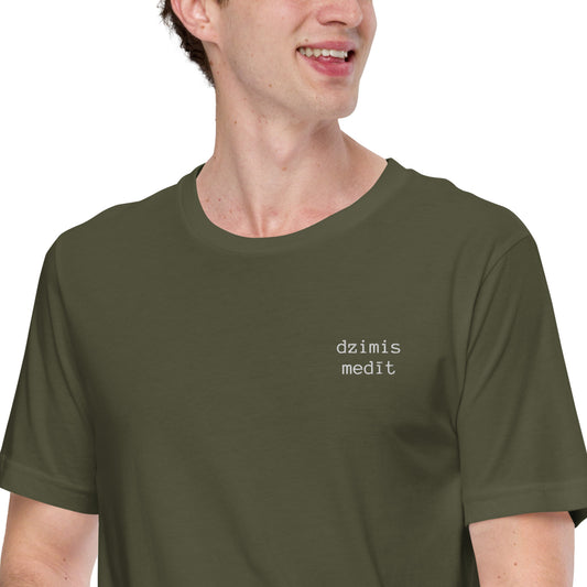 T-krekls ar izšūtu uzrakstu “dzimis medīt”