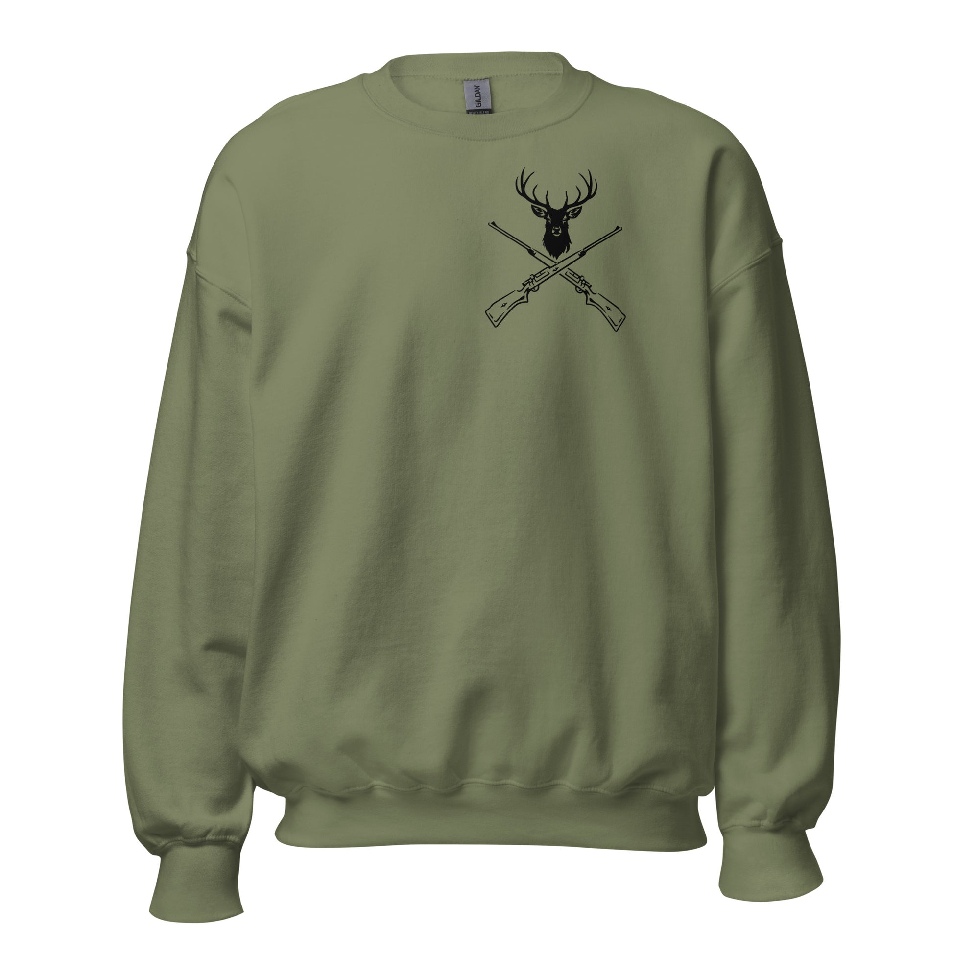 Nepieciešams izejamais mednieku džemperis? Mums ir tas ko Tu meklē! Klasisks džemperis ar eleganyu brieža un ieroču simbolu!.